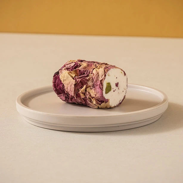 Savourez la texture douce et crémeuse de notre Nougat Blanc Fleur, un délice luxueux qui marie saveurs riches et design raffiné. Garni de noix croquantes finement hachées et surmonté de délicats pétales de fleurs séchées libanaises, chaque bouchée offre un équilibre parfait entre douceur, richesse des fruits secs et notes florales subtiles. Ce nougat artisanal est minutieusement élaboré pour vous offrir une expérience gustative raffinée.