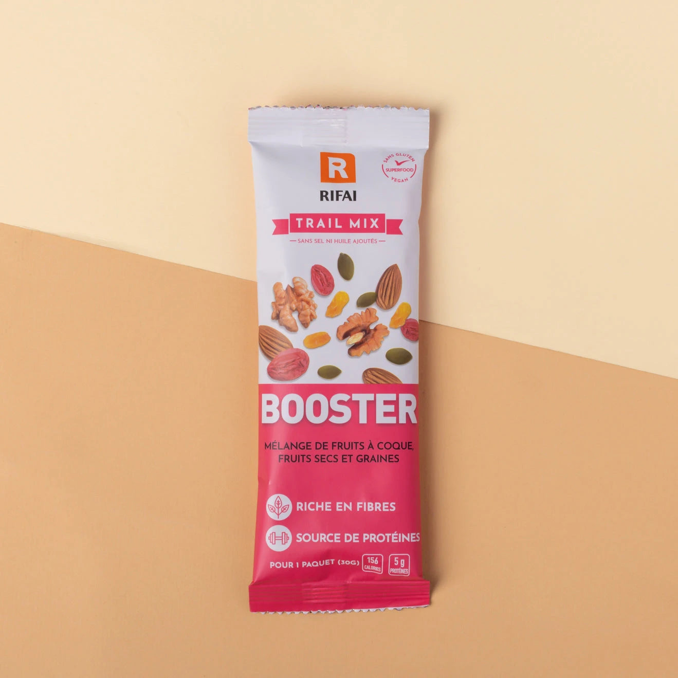 Savourez-le en déplacement, à votre bureau ou lors d’une randonnée. Le Mélange Booster Trail est un choix pratique et intelligent quand vous souhaitez une collation saine et satisfaisante. Il est parfait pour les coups de fatigue en milieu de journée, les lunchboxes ou la récupération après l’effort — chaque fois que votre corps a besoin d’un coup de boost, ce mélange répond présent.
