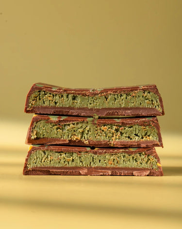 Inspirée de la pâtisserie kunafa classique, appréciée au Moyen-Orient depuis des générations, cette barre chocolatée revisite un dessert intemporel avec une touche plus sombre. Nos pistaches sont soigneusement sélectionnées pour leur qualité supérieure, offrant un croquant profond et une saveur qui sublime chaque bouchée.
