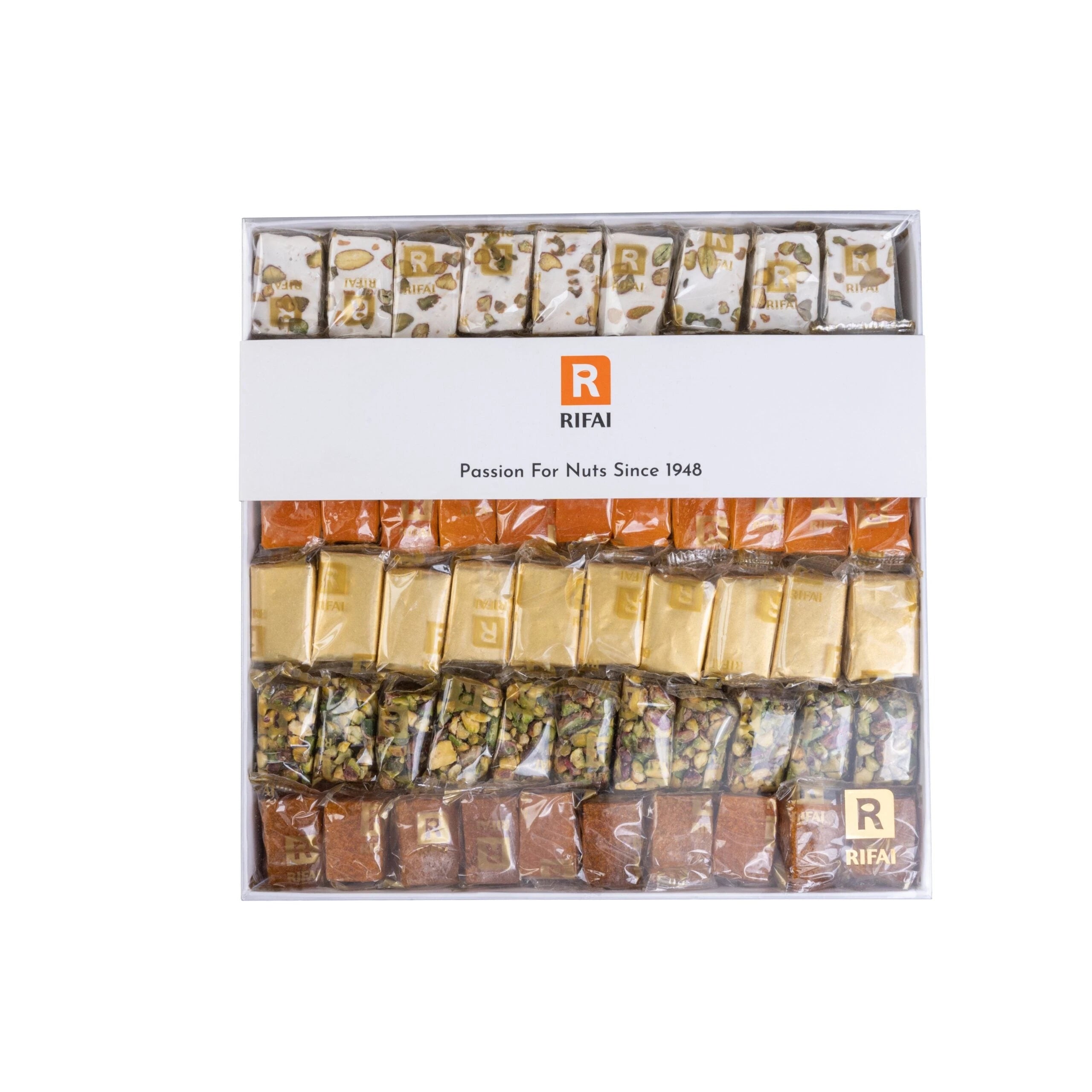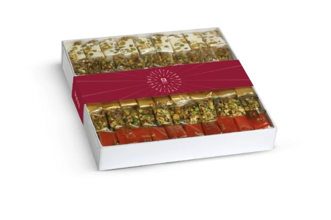 Indulge in the Malban & Nougat Crave, an exquisite assortment of Middle Eastern sweets that brings together a delightful variety of rich nougats, creamy treats, and crunchy delights. This luxurious gift box is filled with a perfect blend of fruity, nutty, and sweet flavors, designed to satisfy every craving. Whether you're enjoying it yourself or sharing it with friends and family, this assortment will elevate any moment.